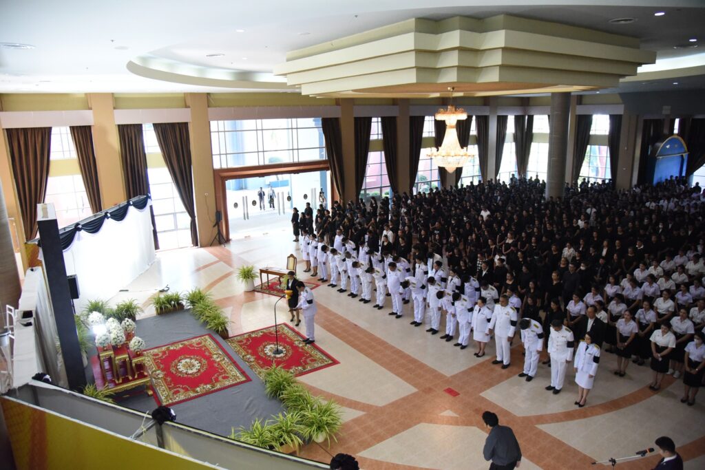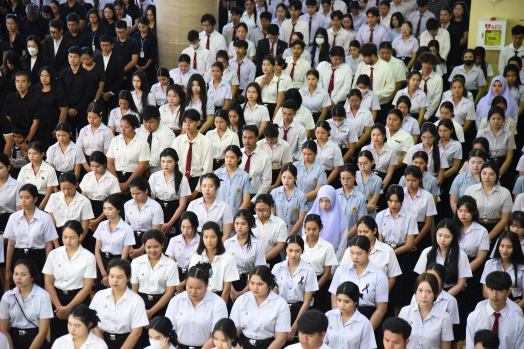 คณะผู้บริหาร คณาจารย์ เจ้าหน้าที่ และนักศึกษาคณะครุศาสตร์ มหาวิทยาลัยราชภัฏสุราษฎร์ธานี ร่วมพิธีน้อมถวายความอาลัย พระผู้เสด็จสู่สวรรคาลัย