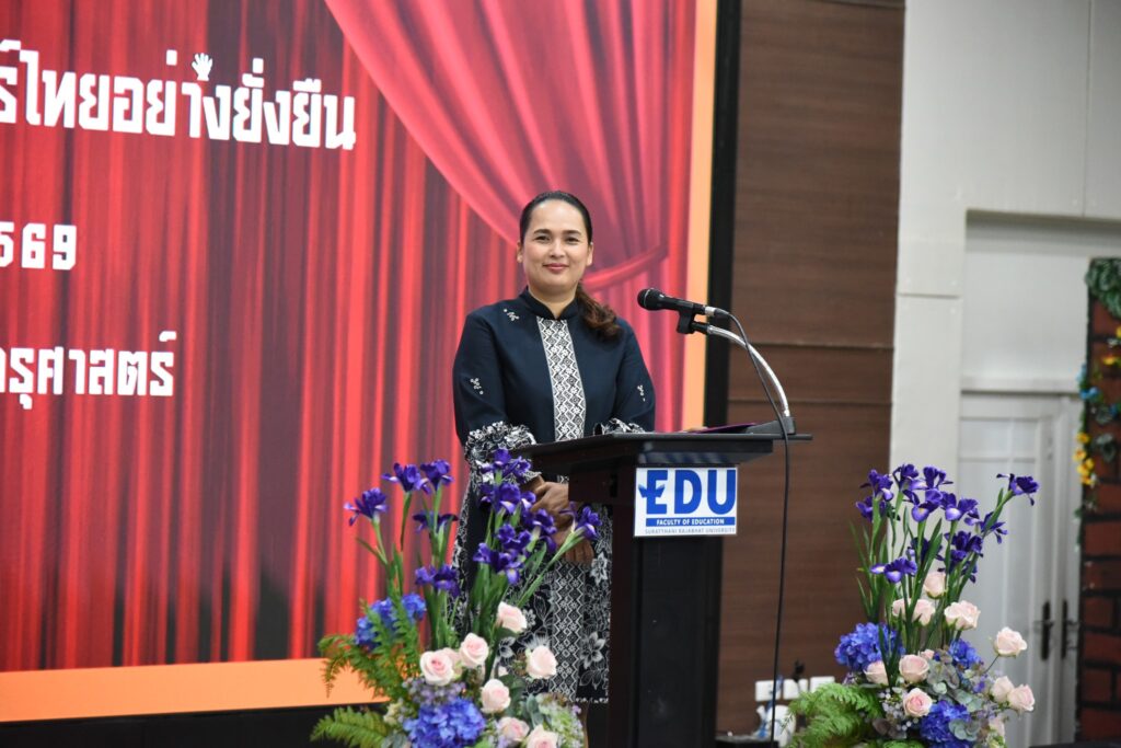 วันที่ 25 กุมภาพันธ์ 2569 สาขาวิชาภาษาไทย คณะครุศาสตร์ จัดโครงการ “ภาษาวรรณศิลป์: แสดงศาสตร์ไทยอย่างยั่งยืน” เพื่อส่งเสริมให้นักศึกษาตระหนักถึงคุณค่าและความงดงามของภาษาไทย ควบคู่กับการพัฒนาทักษะการสื่อสารและการแสดงอย่างสร้างสรรค์ในศตวรรษที่ 21 ในการนี้ ผู้ช่วยศาสตราจารย์ ดร.จิรศักดิ์ แซ่โค้ว คณบดีคณะครุศาสตร์ มหาวิทยาลัยราชภัฏสุราษฎร์ธานี ได้มอบหมายให้ ดร.จิราวรรณ เทพจินดา รองคณบดีฝ่ายยุทธศาสตร์และพัฒนาการศึกษา เป็ประธานในพิธีเปิดโครงการ ท่ามกลางคณาจารย์และผู้มีเกียรติเข้าร่วมอย่างพร้อมเพรียง ณ ห้องประชุมครุพัฒน์ ชั้น 2 คณะครุศาสตร์ โดยเน้นย้ำถึงความสำคัญของภาษาไทยในฐานะเครื่องมือสื่อสารที่สะท้อนอัตลักษณ์ วัฒนธรรม ตลอดจน การบูรณาการภาษากับศาสตร์ด้านการแสดงจึงเป็นกระบวนการเรียนรู้ที่ช่วยพัฒนาผู้เรียนทั้งด้านความรู้ ทักษะ และความคิดสร้างสรรค์ อีกทั้งยังเสริมสร้างบุคลิกภาพและความมั่นใจ อันเป็นคุณลักษณะสำคัญของวิชาชีพครู