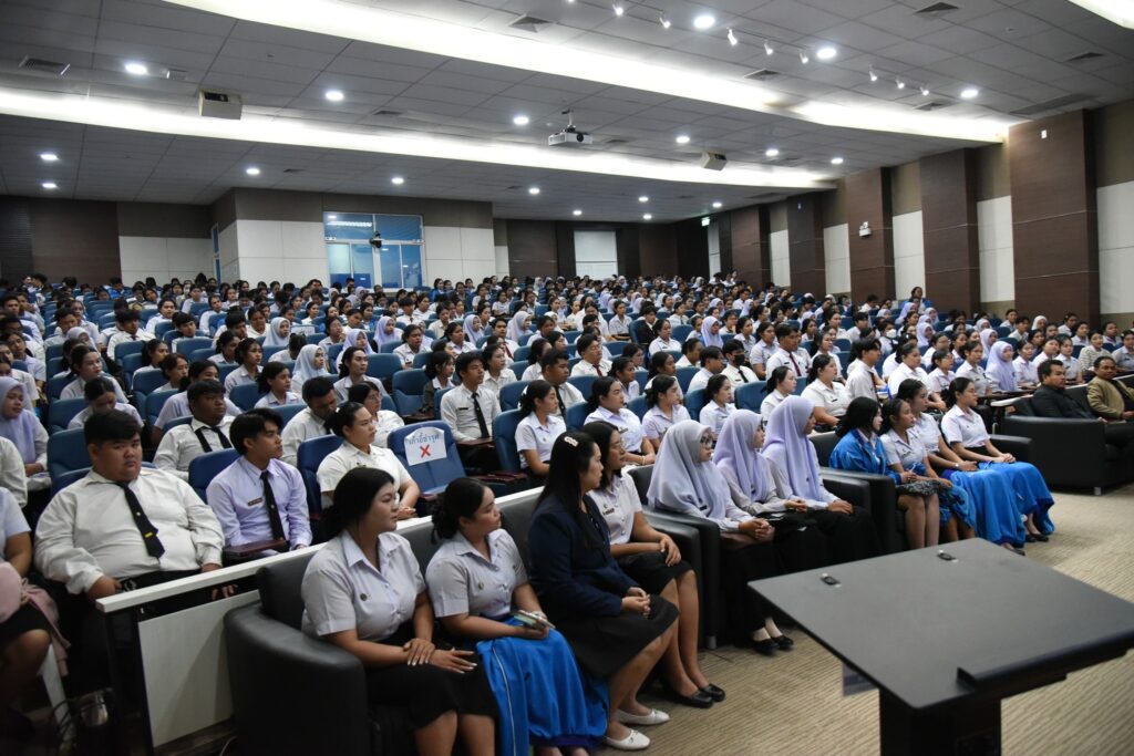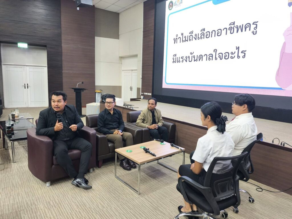 ทั้งนี้ นักศึกษาไ้รับฟังบรรยายพิเศษโดย ผู้ช่วยศาสตราจารย์ ดร.จิรศักดิ์ แซ่โค้ว คณบดีคณะครุศาสตร์ ก่อนเข้าสู่การเสวนาหัวข้อ “เส้นทางวิชาชีพครูสู่อาชีพในอนาคต” ดำเนินรายการโดย นายขจรศักดิ์ เกษหญิต ครูประจำศูนย์ส่งเสริมการเรียนรู้ระดับอำเภอปะทิว พร้อมด้วยผู้ร่วมเสวนาจากครูผู้อำนวยการโรงเรียนและครูผู้มีประสบการณ์ในพื้นที่หลายแห่ง อาทิ โรงเรียนบ้านหนองหญ้าปล้อง โรงเรียนบ้านไสดง (พระแสง) และโรงเรียนม้ธยมบ้านทำเนียบ เพื่อเปิดมุมมองและแนวทางในการประกอบวิชาชีพครูให้แก่นักศึกษา และแบ่งกลุ่มอบรมเชิงปฏิบัติการ “เวทีปฏิบัติการสัมภาษณ์ครูมืออาชีพ” ครอบคลุมการเตรียมตัวและการทดลองเข้ารับการสัมภาษณ์ รวมถึงการเตรียมข้อมูลสำหรับการสอบใบประกอบวิชาชีพครู วิทยากรผู้ทรงคุณวุฒิจากโรงเรียนต่างๆ ในพื้นที่ถ่ายทอดประสบการณ์จริงให้แก่นักศึกษาอย่างเข้มข้น ทั้งความรู้ทางวิชาการ ทักษะการสอน และความพร้อมทางวิชาชีพ เพื่อก้าวสู่การเป็น ครูมืออาชีพที่มีคุณภาพ ตอบสนองความต้องการของระบบการศึกษาไทยในศตวรรษที่ 21 อย่างแท้จริง